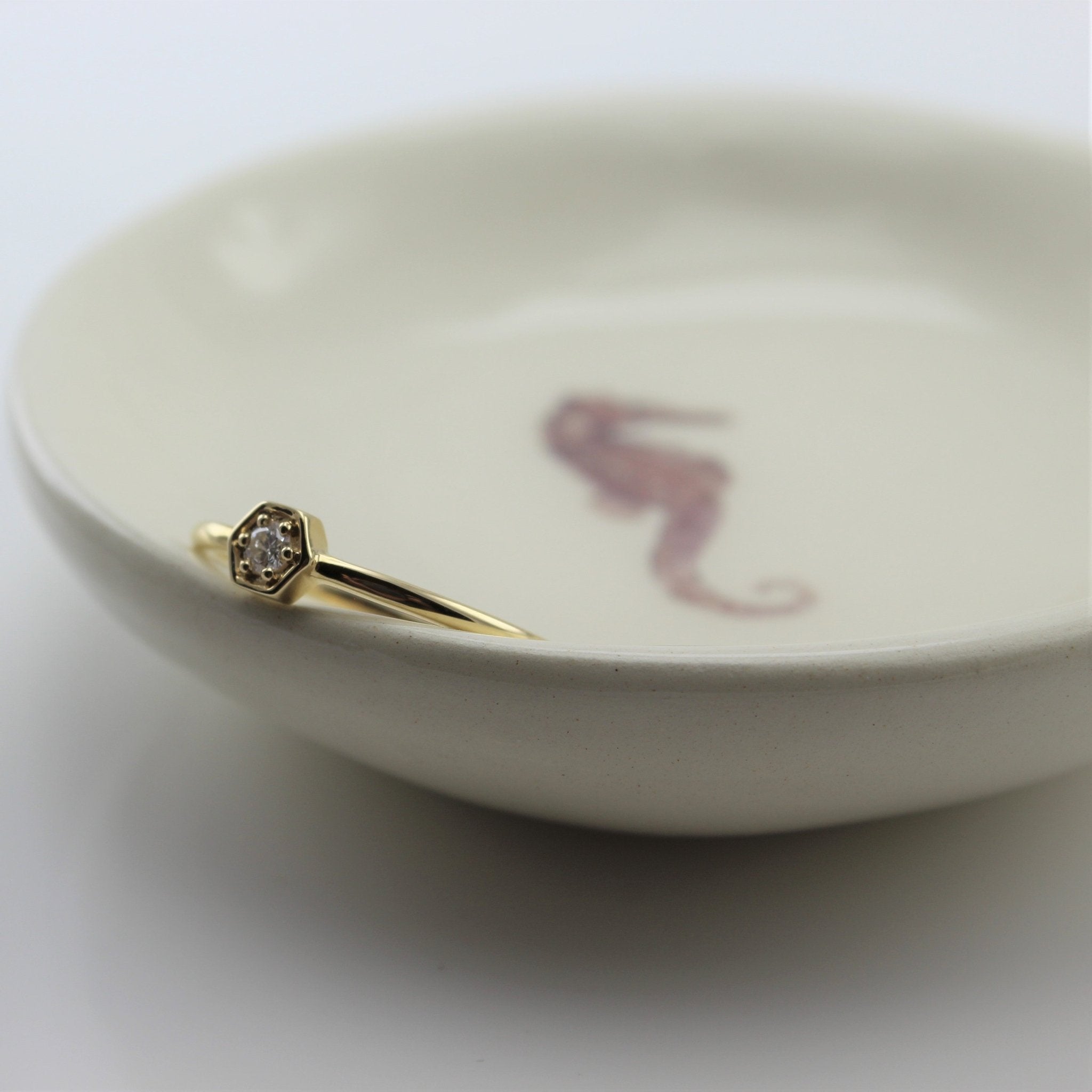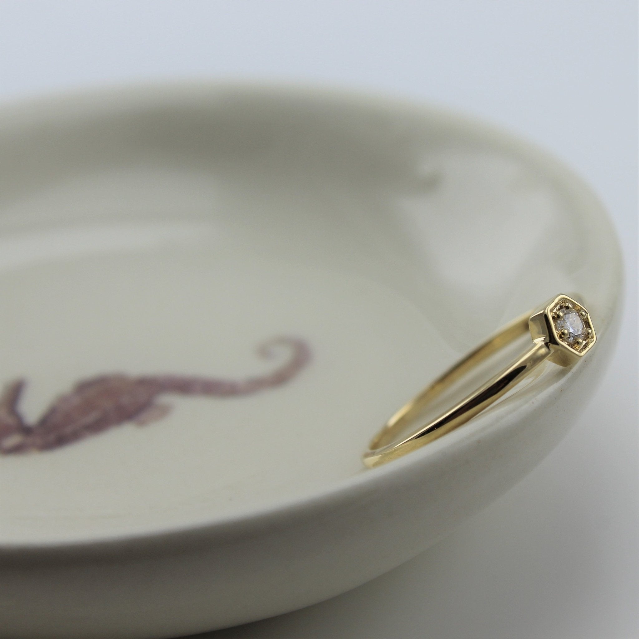 Add some sparkle to your stackables with our hexagon natural diamond ring in rich 14k gold. The setting is low profile, making Starflower's Hexagon Stackable Ring a perfect everyday piece worn alone, or mixed and matched with other fun stackable styles.