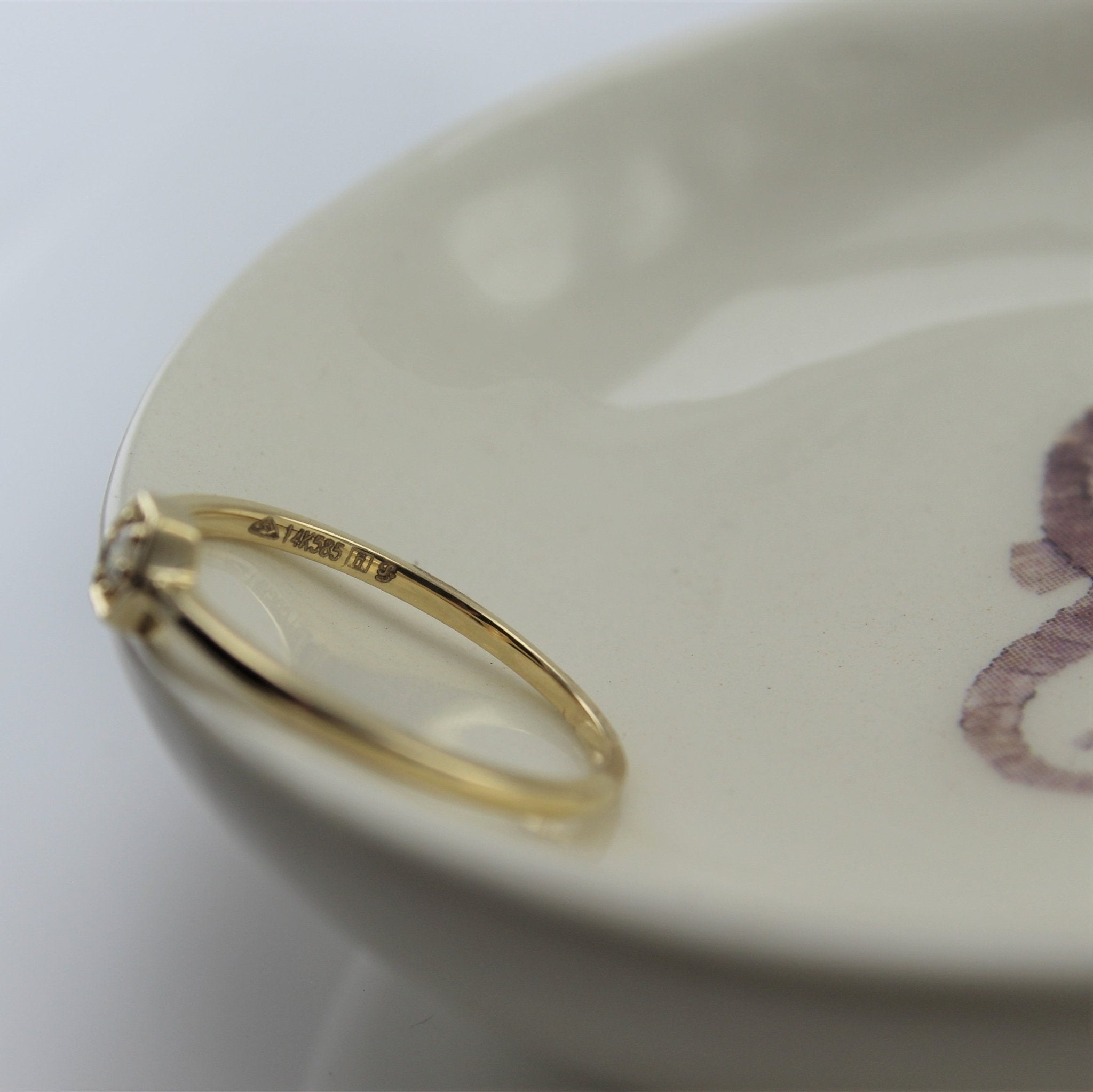 1.5 mm band .07CT diamond Please Note: If you don't see your size available, let us know - our jeweler has over 40 years of experience, and we can accommodate all sizing and customization requests! Diamond weight is approximate, stone is G color, SI Clarity.