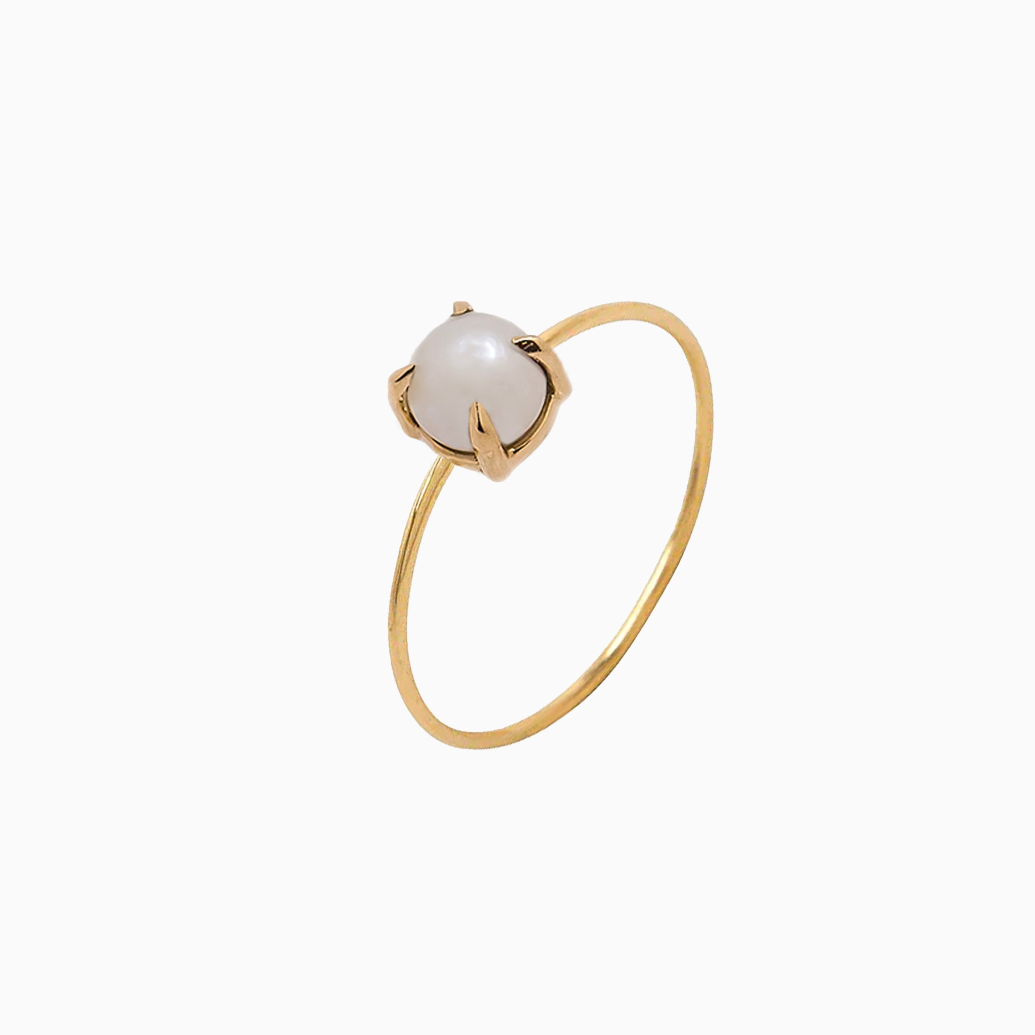 Set on a 0.91mm solid 14k gold band, and featuring a claw-prong set 3mm cabochon-cut freshwater cultured pearl, this stackable is cute rocked on its own, or paired with our fun, flirty, color-popping microstackable rings. Get big style in a small setting that packs a powerful punch of stylish fun.