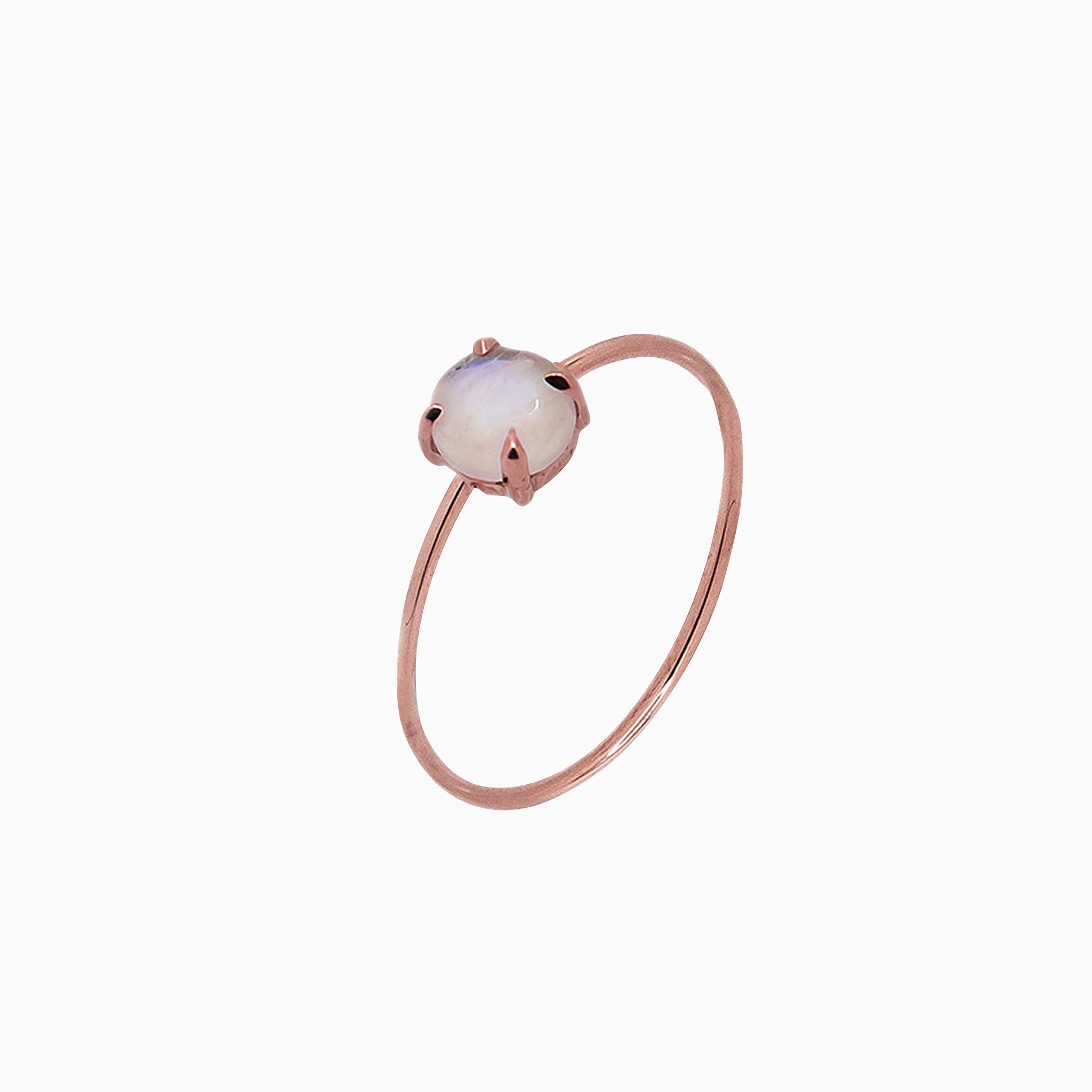 A natural fit for Cancers, this moonstone claw prong-set on a 0.91mm solid 14k gold band is perfect for adding a touch of mystery.