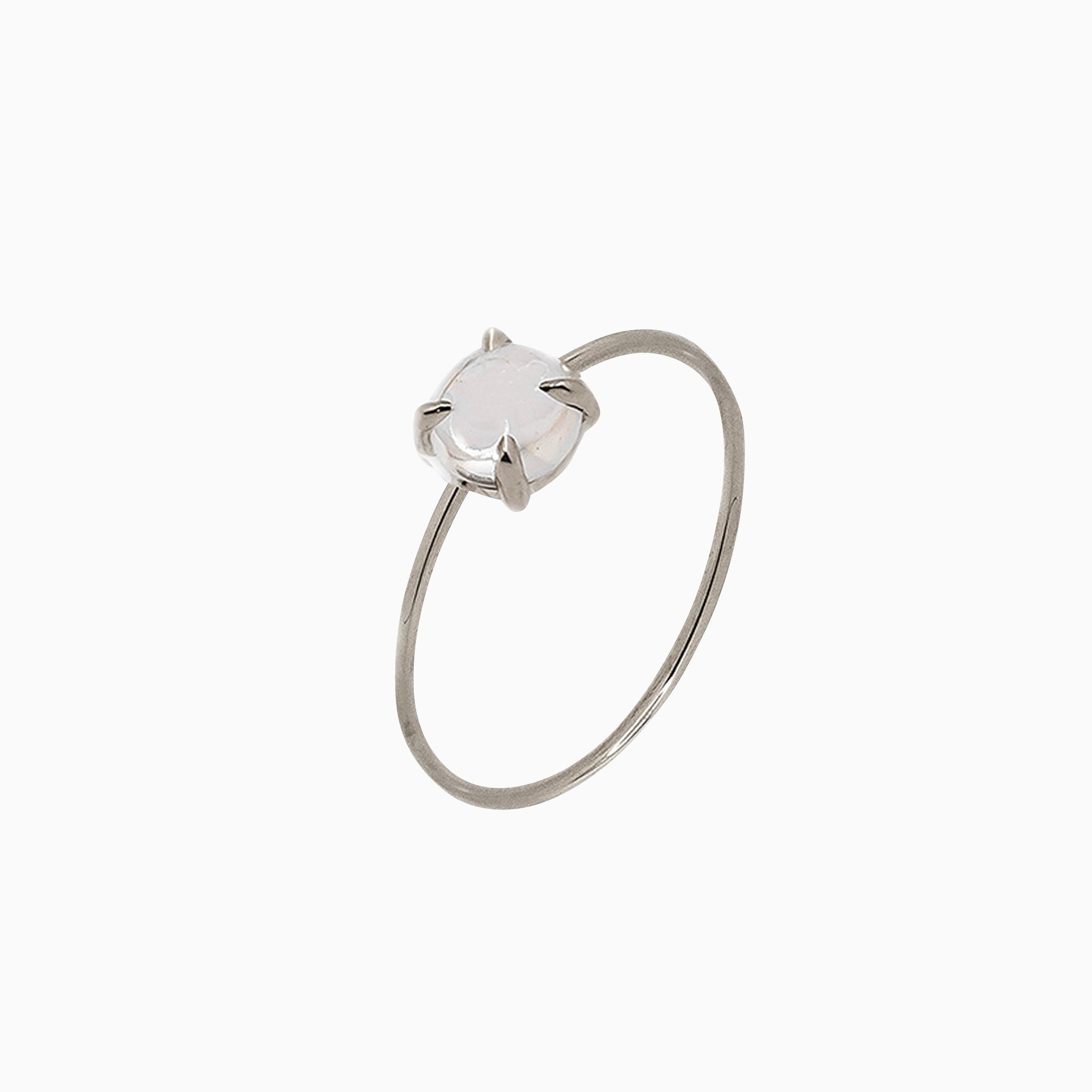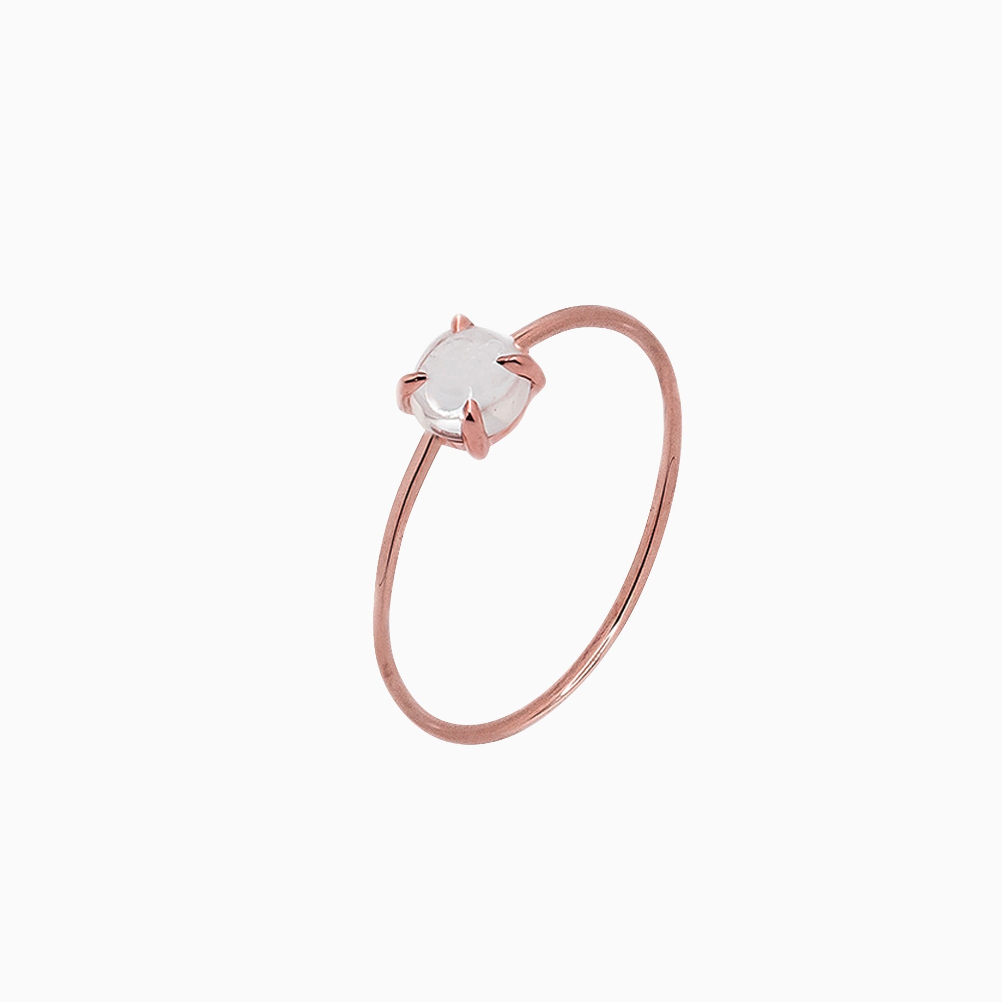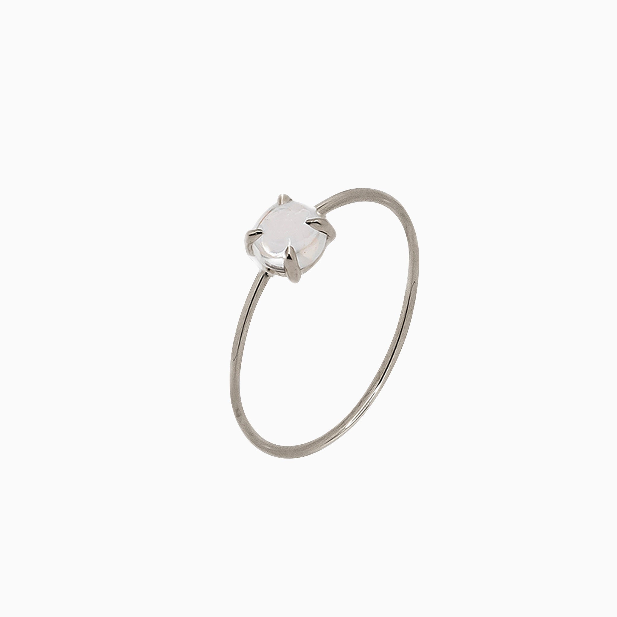 A sturdy microstackable 14k gold ring with a delicate look, handmade in New York with a 3mm White Quartz stone in a 4-prong setting on a 0.91mm band. Available in yellow, rose, or white gold. Colors of natural materials vary slightly, and the color of products may appear different on different screens. Each stone is selected for its beauty.