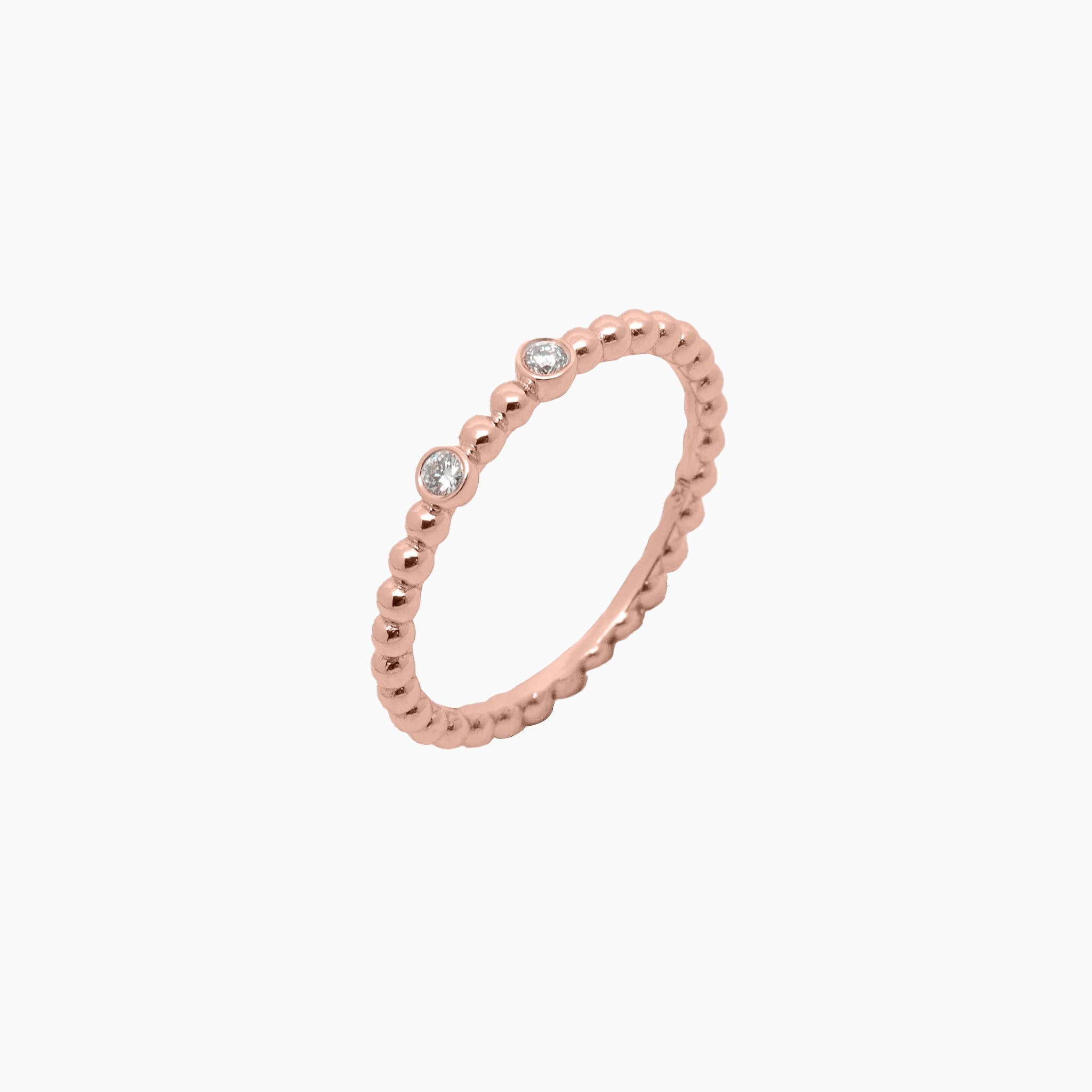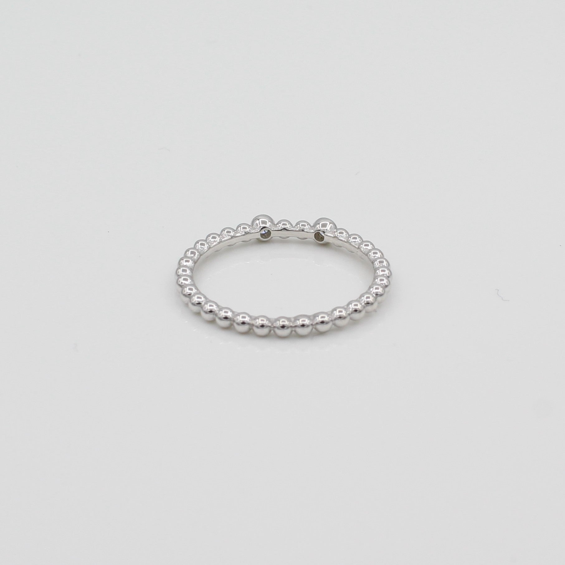 Versatile and fun, our beaded stackable band is the perfect addition to your jewelry box. This stackable eternity band is beaded all around, and features two bezel-set natural diamonds to add a bit of extra sparkle to your look.
