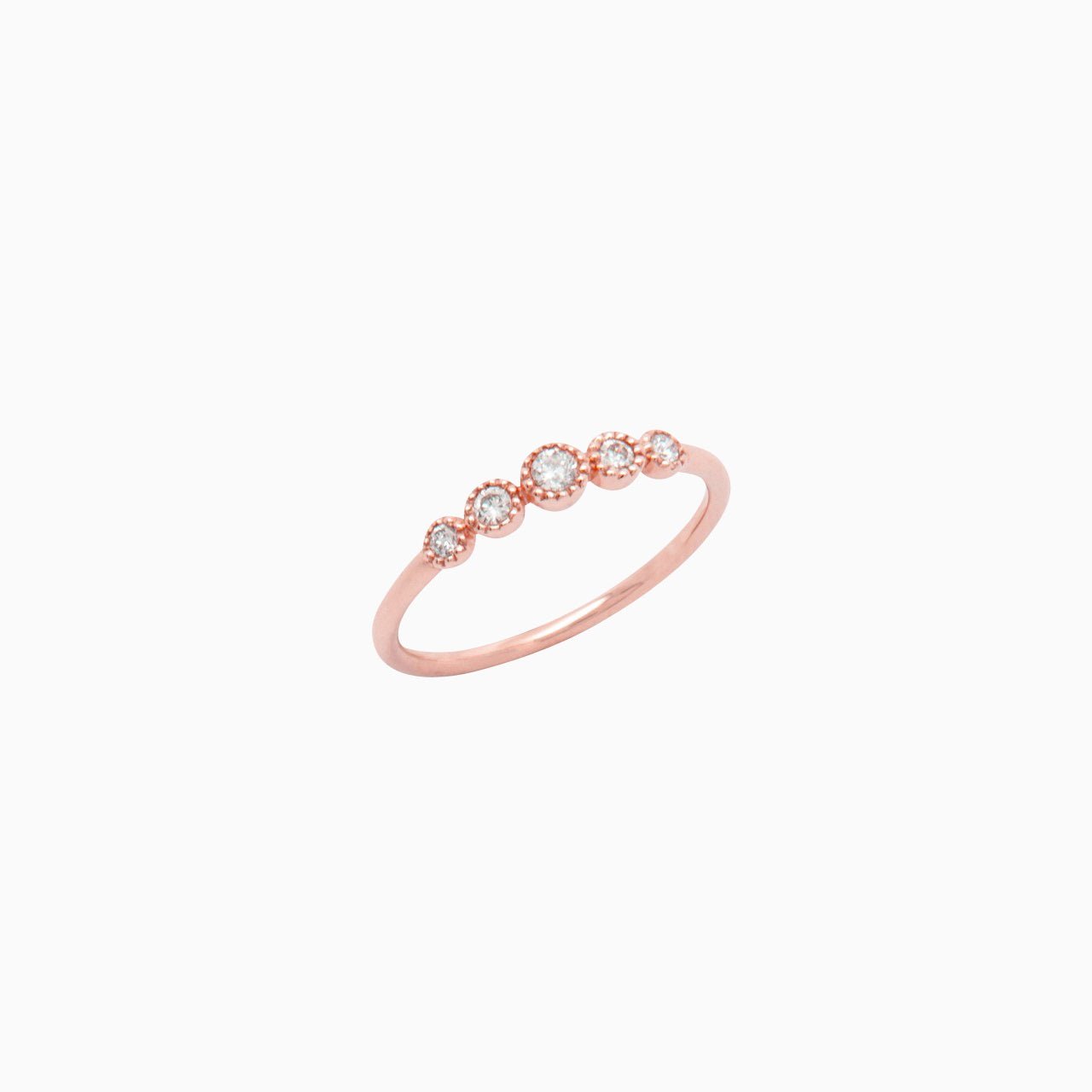This ring features five diamonds with a total diamond weight of approximately 0.14CT, and is made of sturdy 14k gold. The beaded band measures approximately 1.45mm in width.